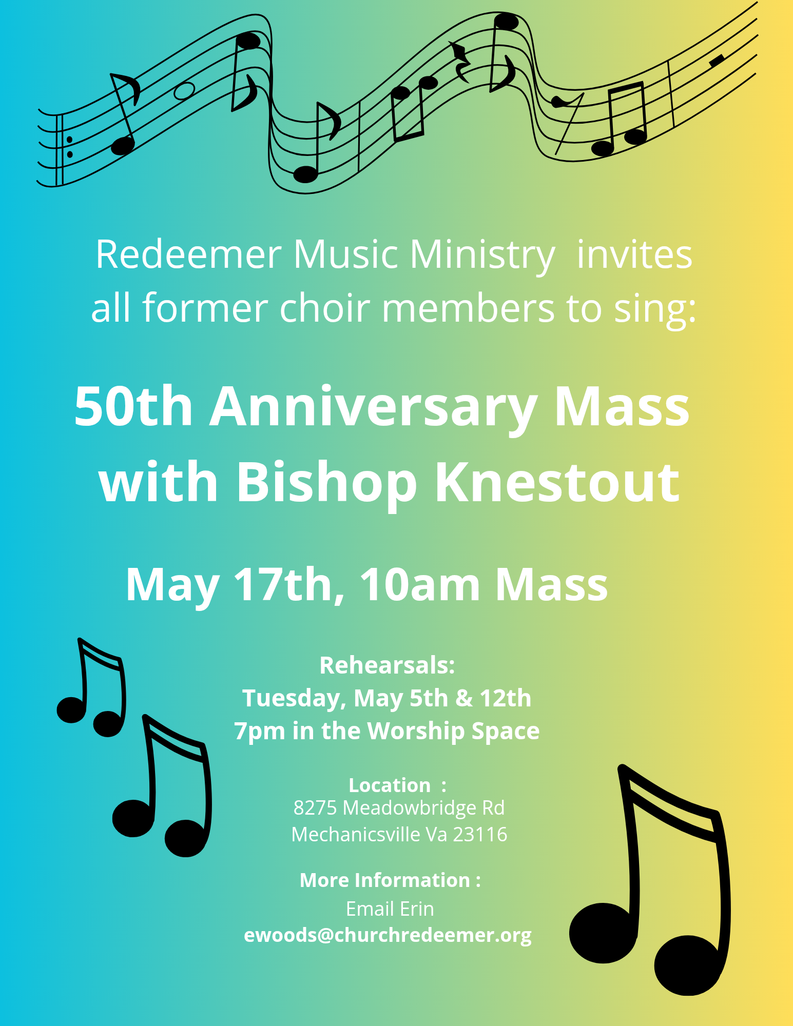 Note: The third Monday of each month Mass will be celebrated at Covenant Woods at 10:30am: 7090 Covenant Woods Dr. Mechanicsville VA 23111