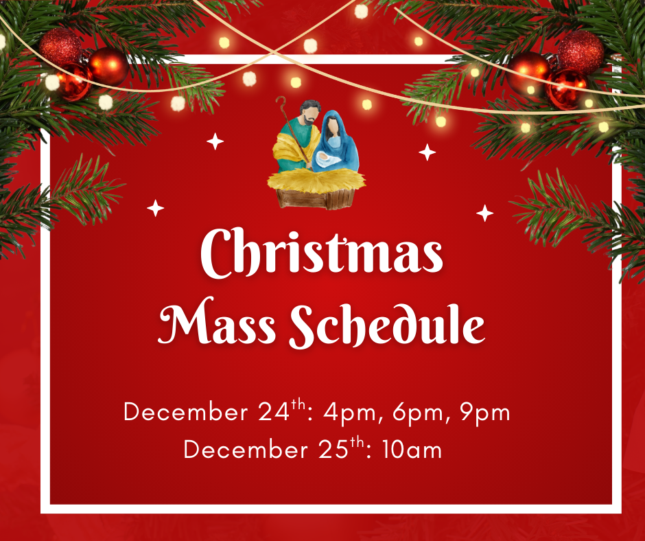 Christmas Eve Masses: 4pm(simulcast in Genesis Hall), 6pm, 9pm
